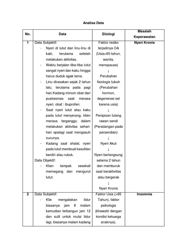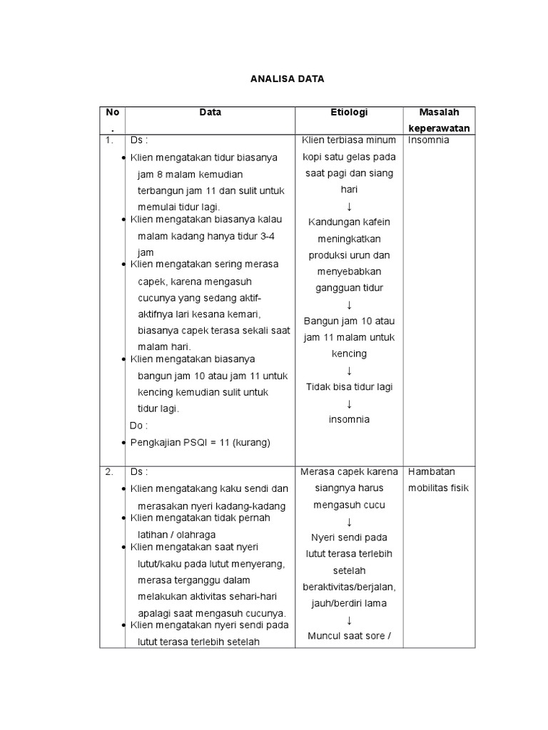 Analisa Data Diagnosa Klien Dengan Isk