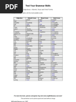 Adjectives Adverb Noun Verb Forms Adverb Adjective Free 30