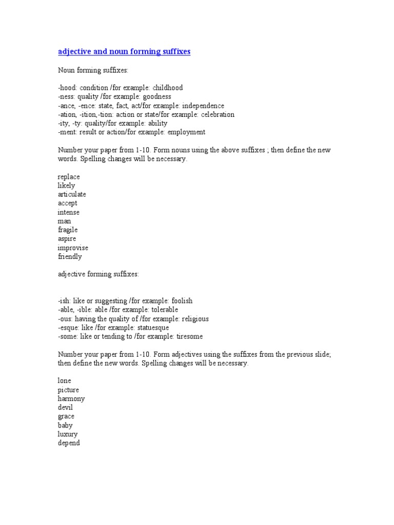 Adjective And Noun Forming Suffixes Doc Document