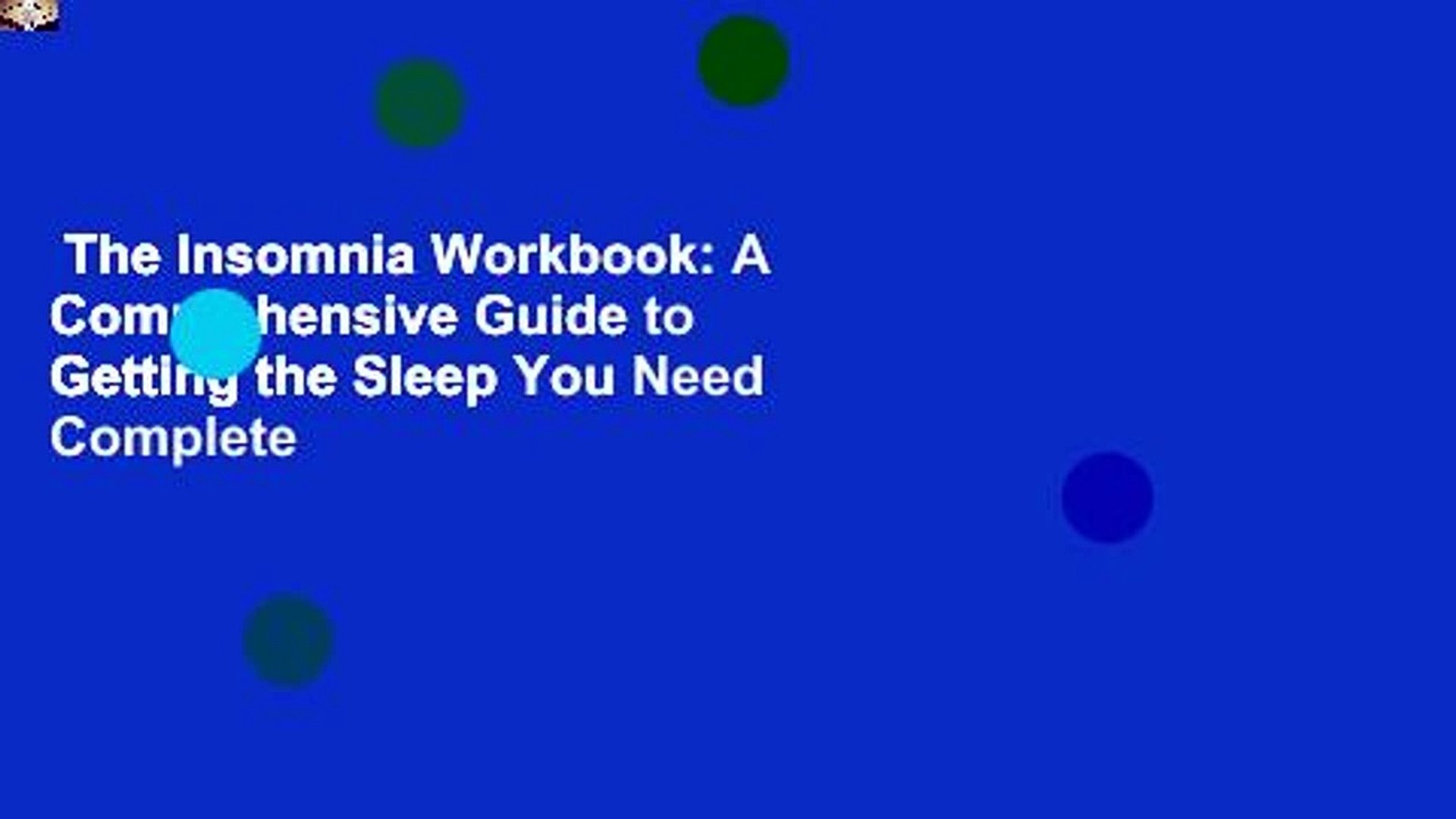P D F The Insomnia Workbook A Comprehensive Guide To Getting The S