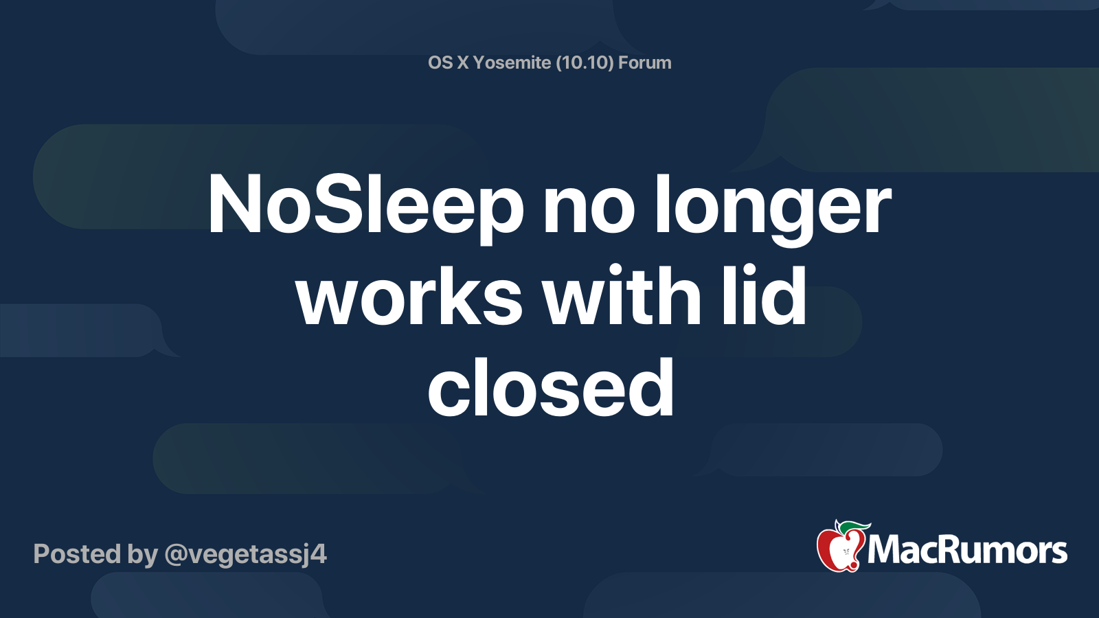 Nosleep No Longer Works With Lid Closed Macrumors Forums